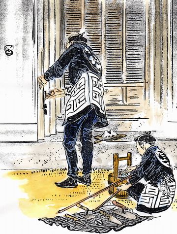 それには、築地・上柳原町の藍玉問屋〔阿波屋〕のかかりつけの棟梁が〔木曾甚〕で、壁塗りには〔須佐十〕に声をかけるという習慣(しきたり)を調べなくてはならない。