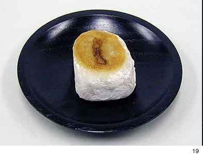 19. 〔松木屋〕 (静岡市)のうさぎ餅 太田蜀山人も賞したと。 満月を模した羽二重外皮にうさぎの焼印。1個100円