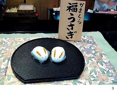 3. 〔三日月堂 花仙〕(鎌倉・建長寺の手前)のうさぎ饅頭。1個158円
